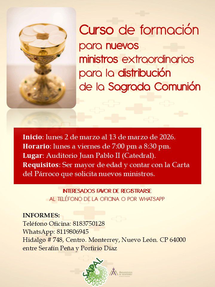 Arquidiócesis de MonterreySecretariado de Pastoral Litúrgica (SAPAL)XXIX JORNADA LITÚRGICA 2026«LITURGIA Y FAMILIA» 📍 MUNICIPIOS: SAN NICOLÁS DE LOS GARZA Y […]